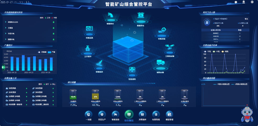 3. Programación colaborativa de producción: integre datos de minería, transporte, ventilación y otros sistemas, optimice dinámicamente los procesos de producción, asigne recursos de manera inteligente y mejore la eficiencia del trabajo.